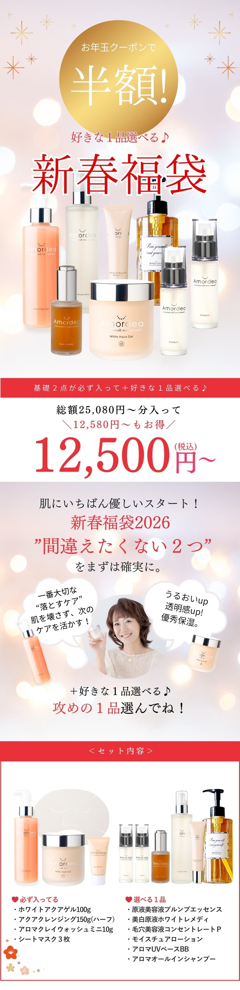 お得なので去年も購入しましたが、去年も今年もシークレットアイテムは同じ(ボディクリーム)で残念でした。ほとんど使わずに一年ほど放置になり捨てました。余ってる商品を入れらられてるような気がしてしまいました。